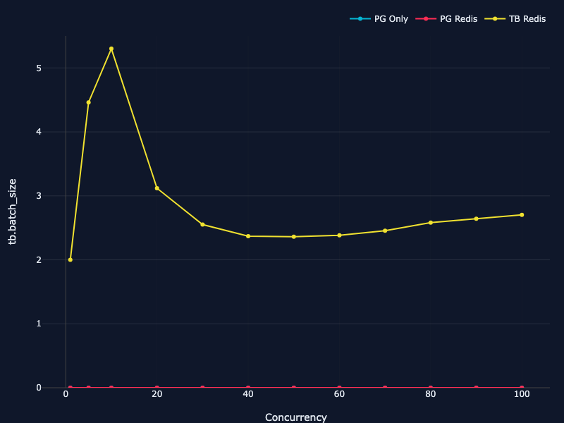 TigerBeetle has an interface created for batching. Yet I was using it with many concurrent requests, each creating a batch size of 1.